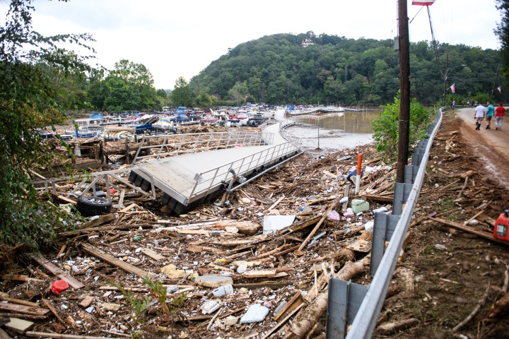 El huracán Helene se había reducido a una tormenta tropical en el momento en que azotó Carolina del Norte, pero lanzó una potente bomba de agua sobre la zona. Las casas situadas en las laderas parecían seguras, pero las lluvias torrenciales provocaron el hundimiento de la arcilla subyacente, dando lugar a grandes deslizamientos de tierra hacia los valles de abajo. Incontables vidas y medios de subsistencia fueron arrastrados por ríos de escombros y restos del desastre.