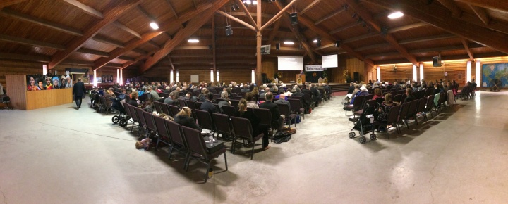 The auditorium at the new venue, appropriately called the Tabernacle, built with huge beams and natural woods, created an ambiance that promoted both our worship services and long periods of fellowship before and after services. Extended fellowship and visiting was augmented by the delicious onsite meals served by the camp staff in the camp dining hall.